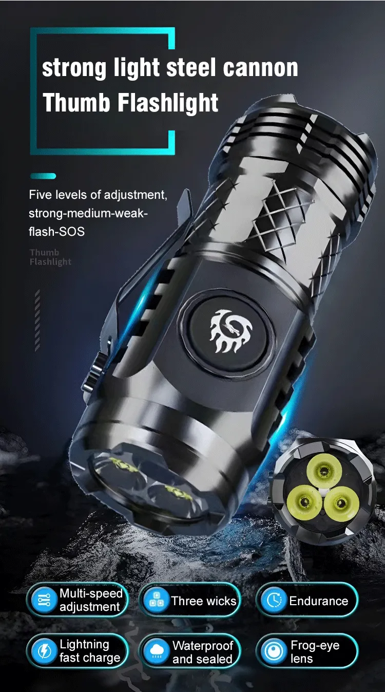 🔥German Three-eyed Monster Mini Flash Super Power Flashlight